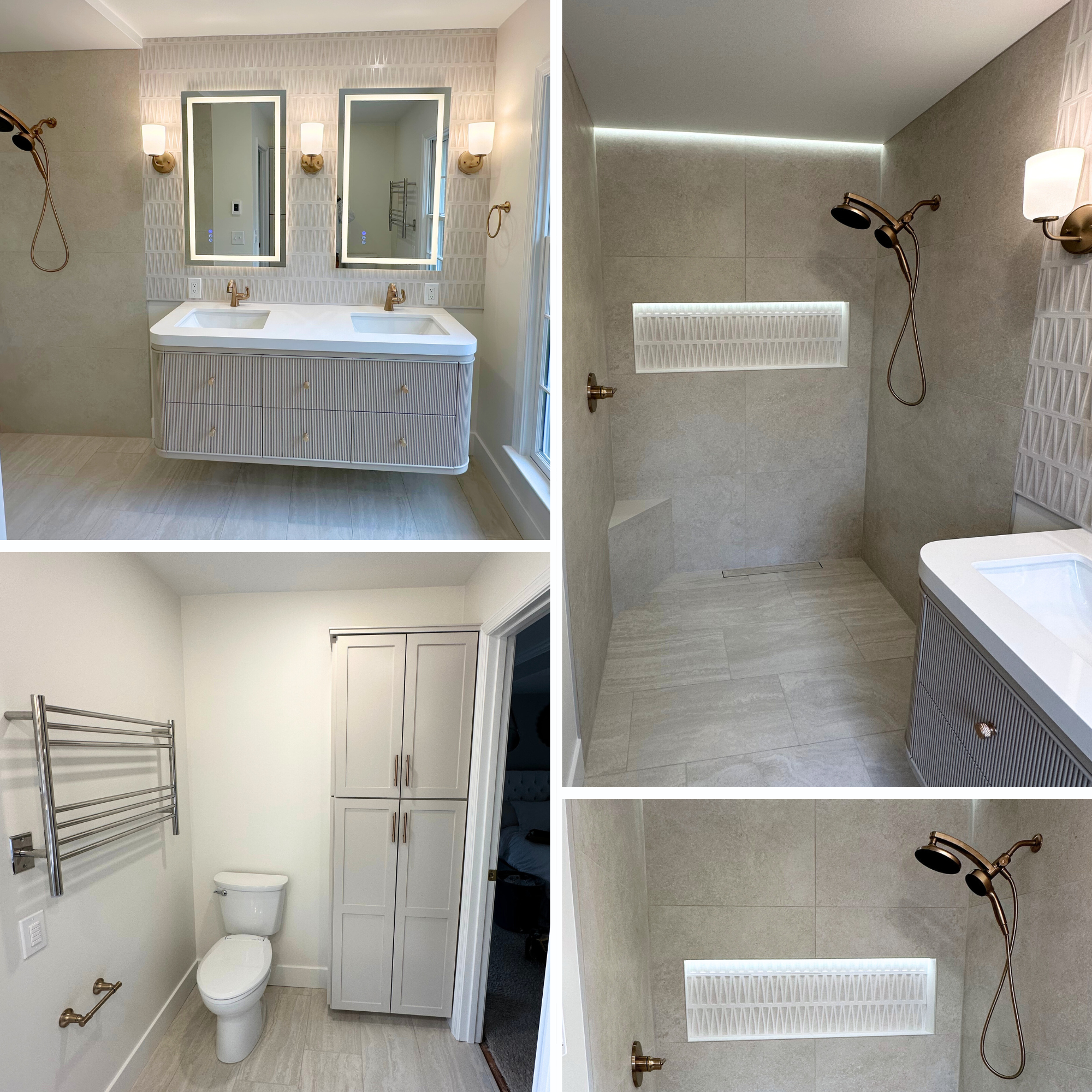 While this project did not require structural changes, the transformation focused on updating finishes, improving functionality, and introducing luxurious details that make the space feel like a spa.